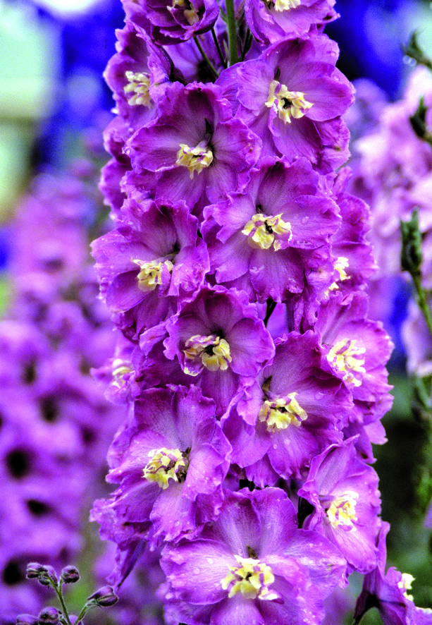 Delphinium New Millennium Hybrids produce high quality, sturdy, vertical spires that feature densely packed single and double petal blossoms. These F1 hybrids have been bred for form, stem strength, flower quality and growth habit. This majestic cold hardy perennial grows 36″ to 48″ inches tall and is ideal for lining fences, creating floral accents at the back of a border or as a rich color tapestry when planted in mass. Also known as the English Delphinium Hybrid or New Zealand Hybrids Mix, it has been bred to tolerate some heat and humidity in warmer climate zones. Experienced growers and producers tout this extraordinary variety as being far superior to Pacific Giants and consider it an excellent cut flower for market.