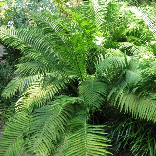 Matteuccia struthiopteris The King is a larger variety than the species. It features a large crown, a large vase-shaped clump of sterile fronds and fertile fronds that grow up to 50% larger than the species (often to as much as 7′ tall). It is distinguished from the species not only by size, but also by having better heat tolerance for growth in the deep South and by being easier to grow. Some experts consider M. struthiopteris ‘The King’ to be synonymous with M. struthiopteris ‘Jumbo’.